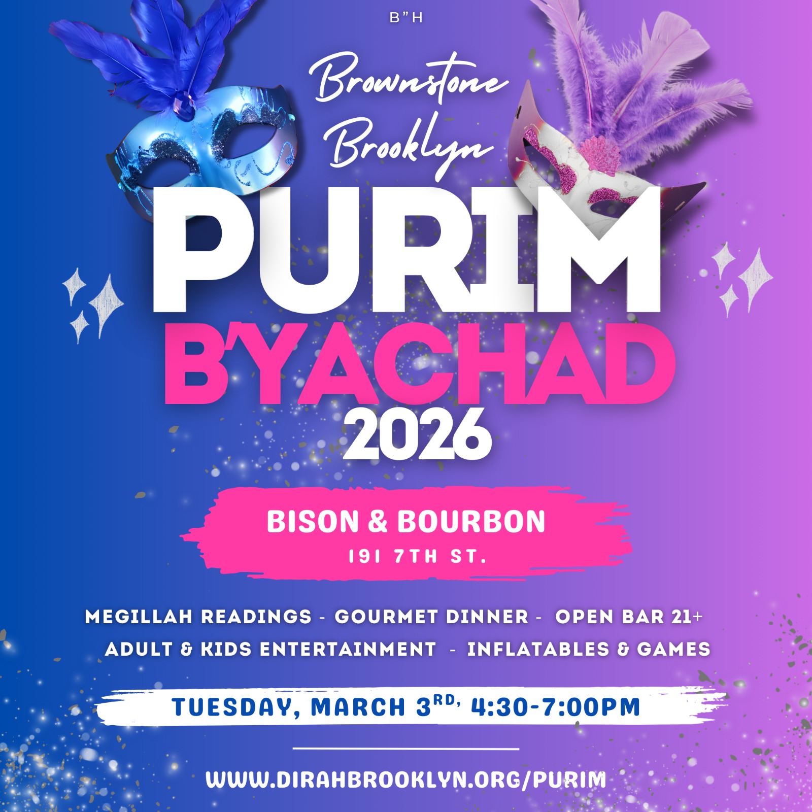Purim B’Yachad is Brownstone Brooklyn's Purim celebration, bringing together multiple communities for one epic night at Bison & Bourbon.
